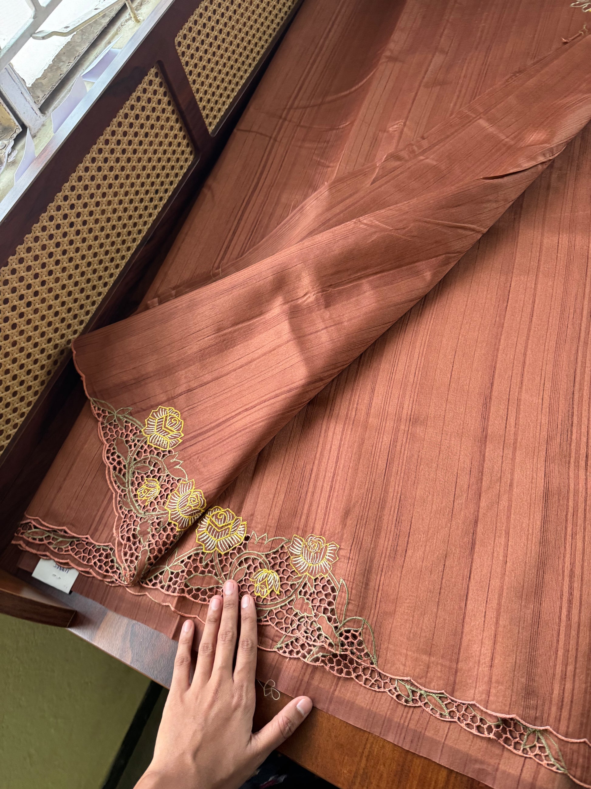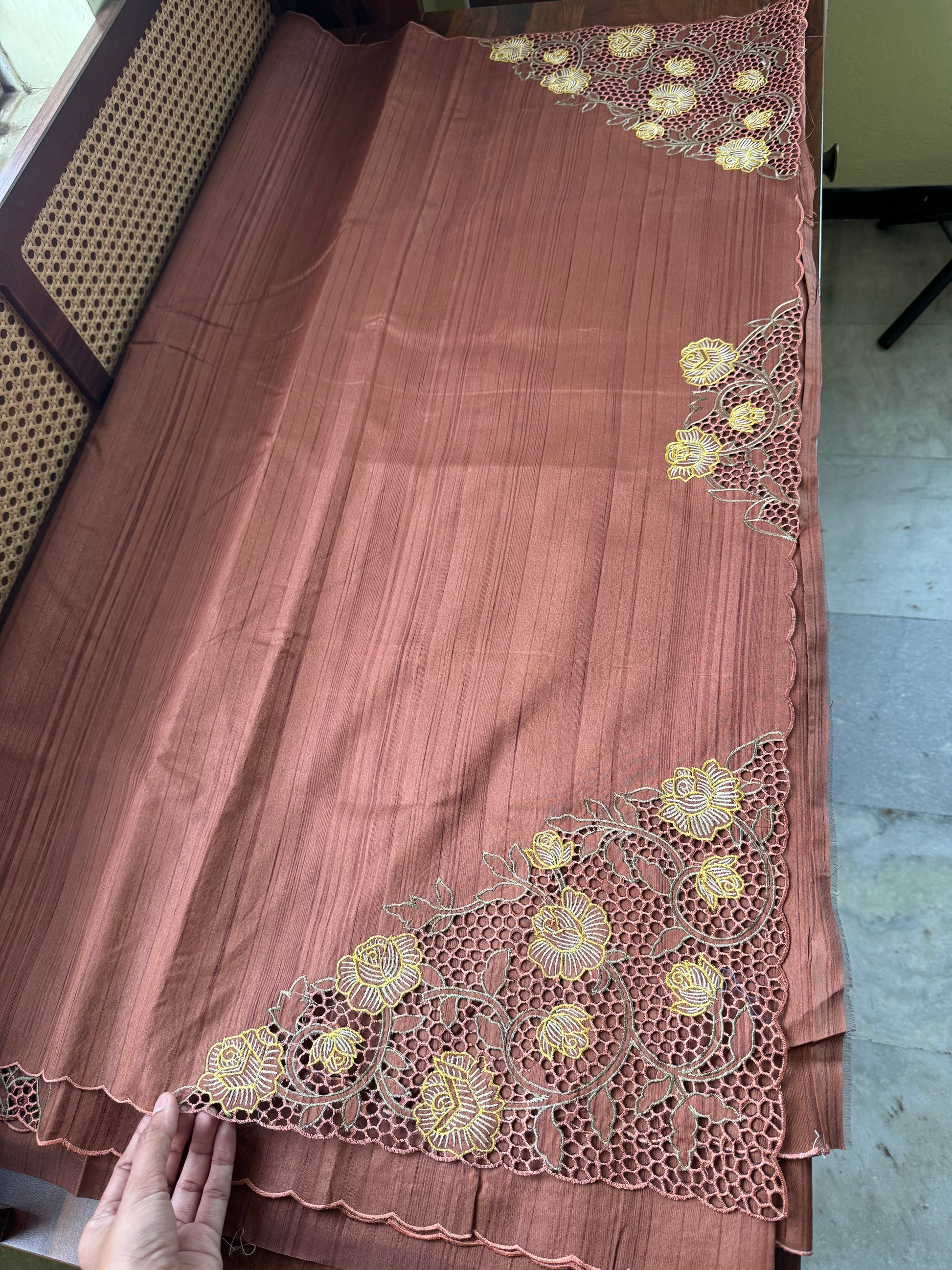 • Design: Intricate embroidery delicately woven along the borders for a refined finish