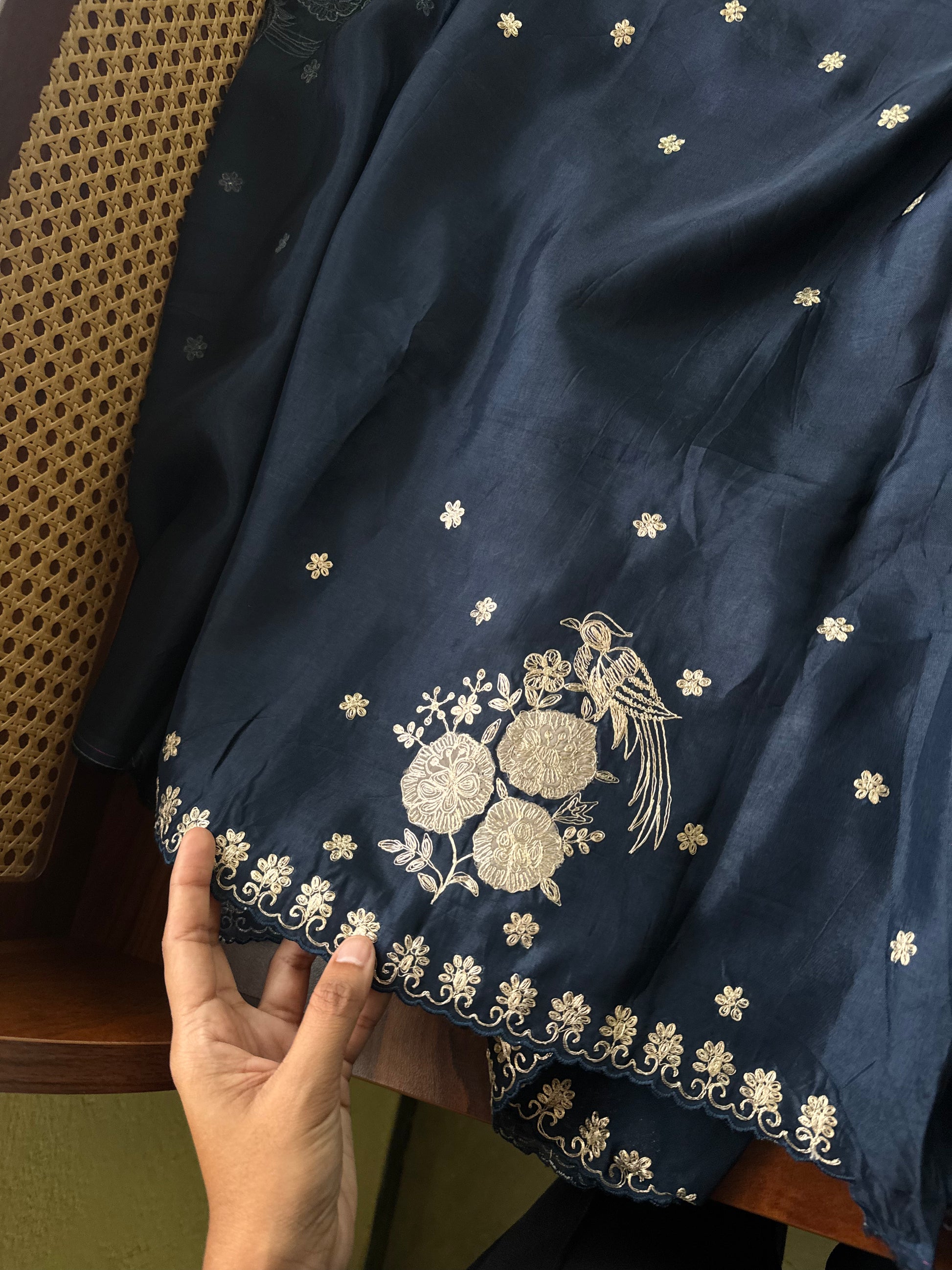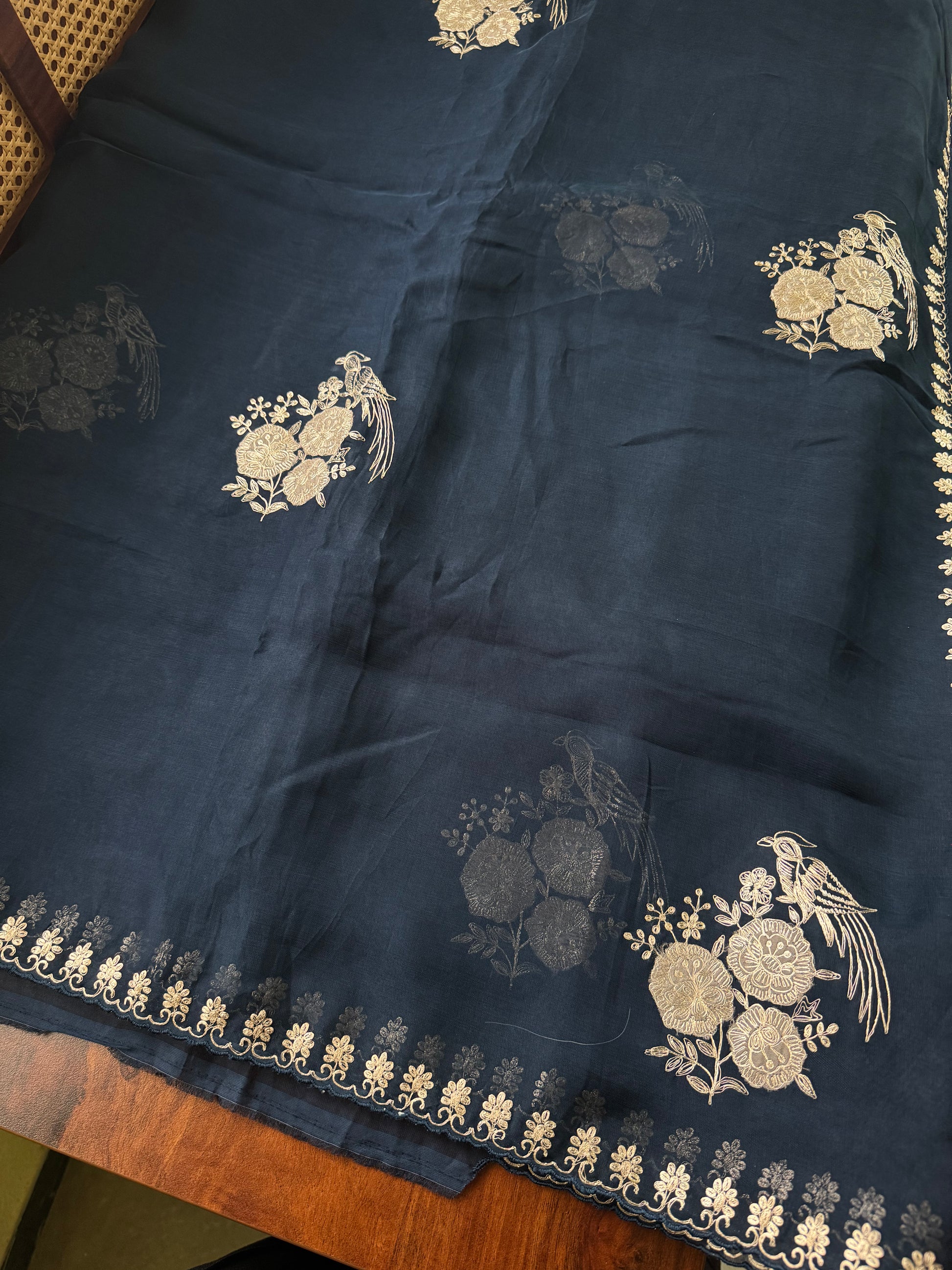 Luxe Georgette Saree with pita work & heavy blouse- Dark Blue