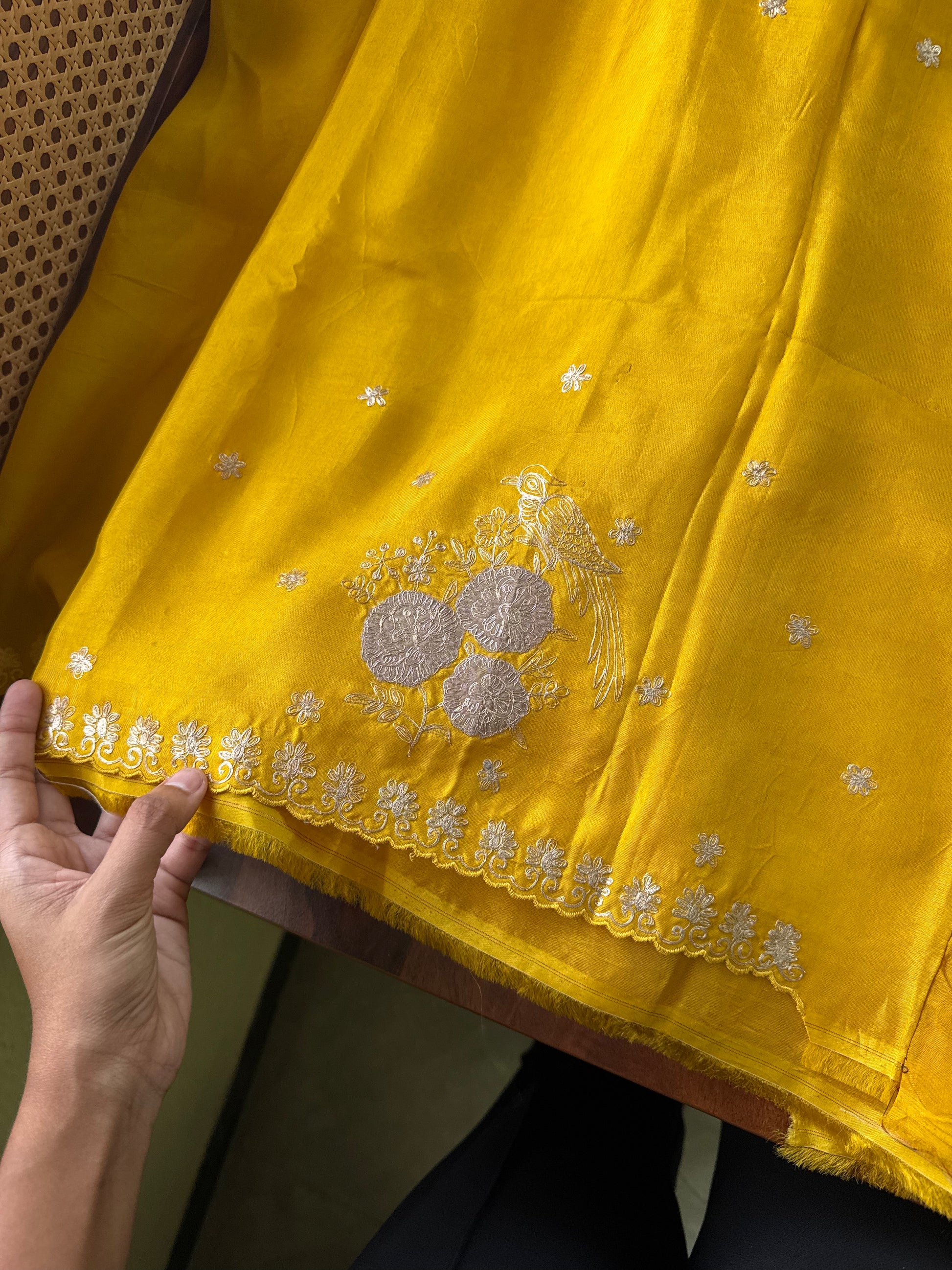 Luxe Georgette Saree with pita work & heavy blouse- Yellow