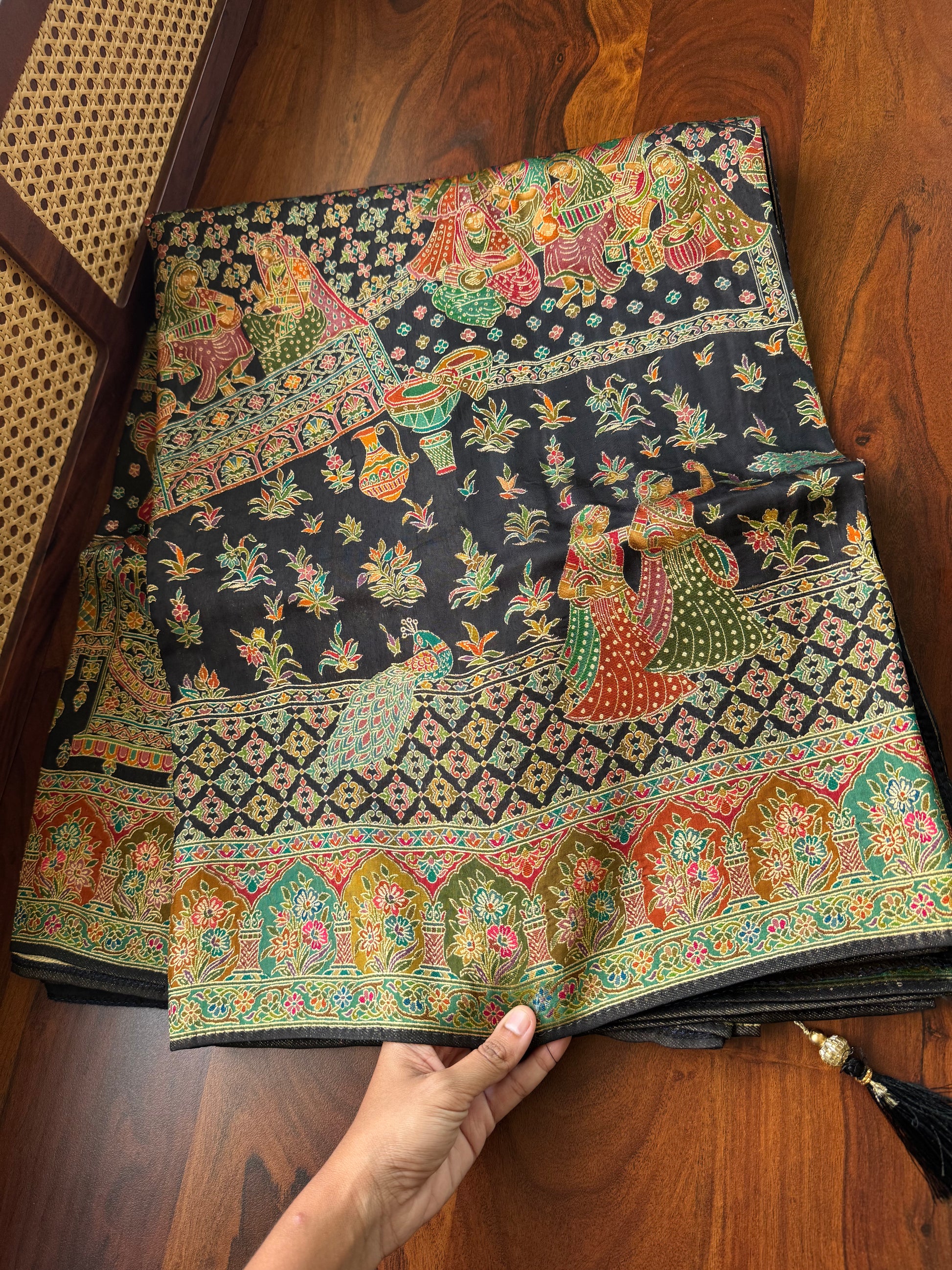 Luxe Pashmina Style Semi Silk Saree - Black