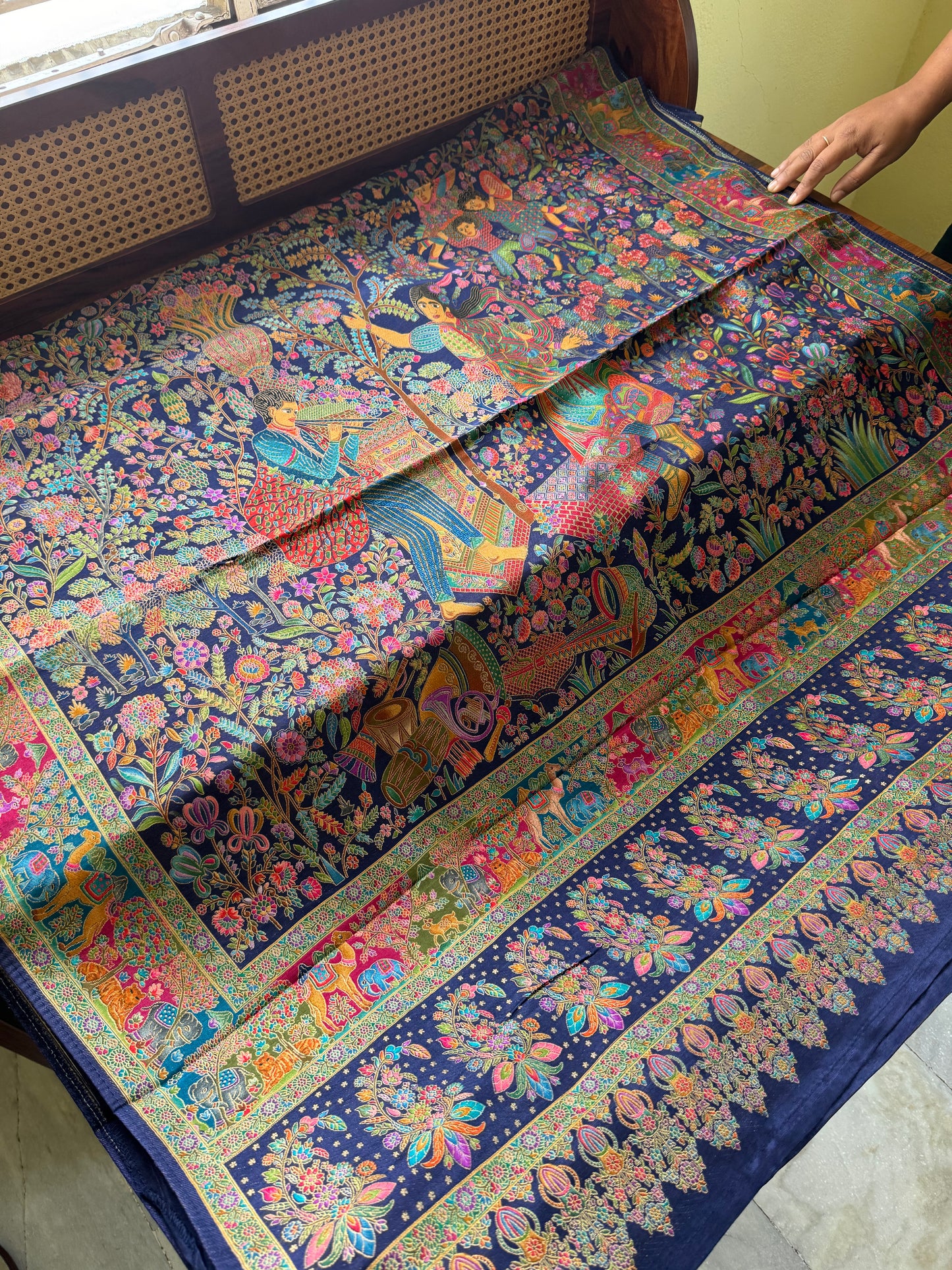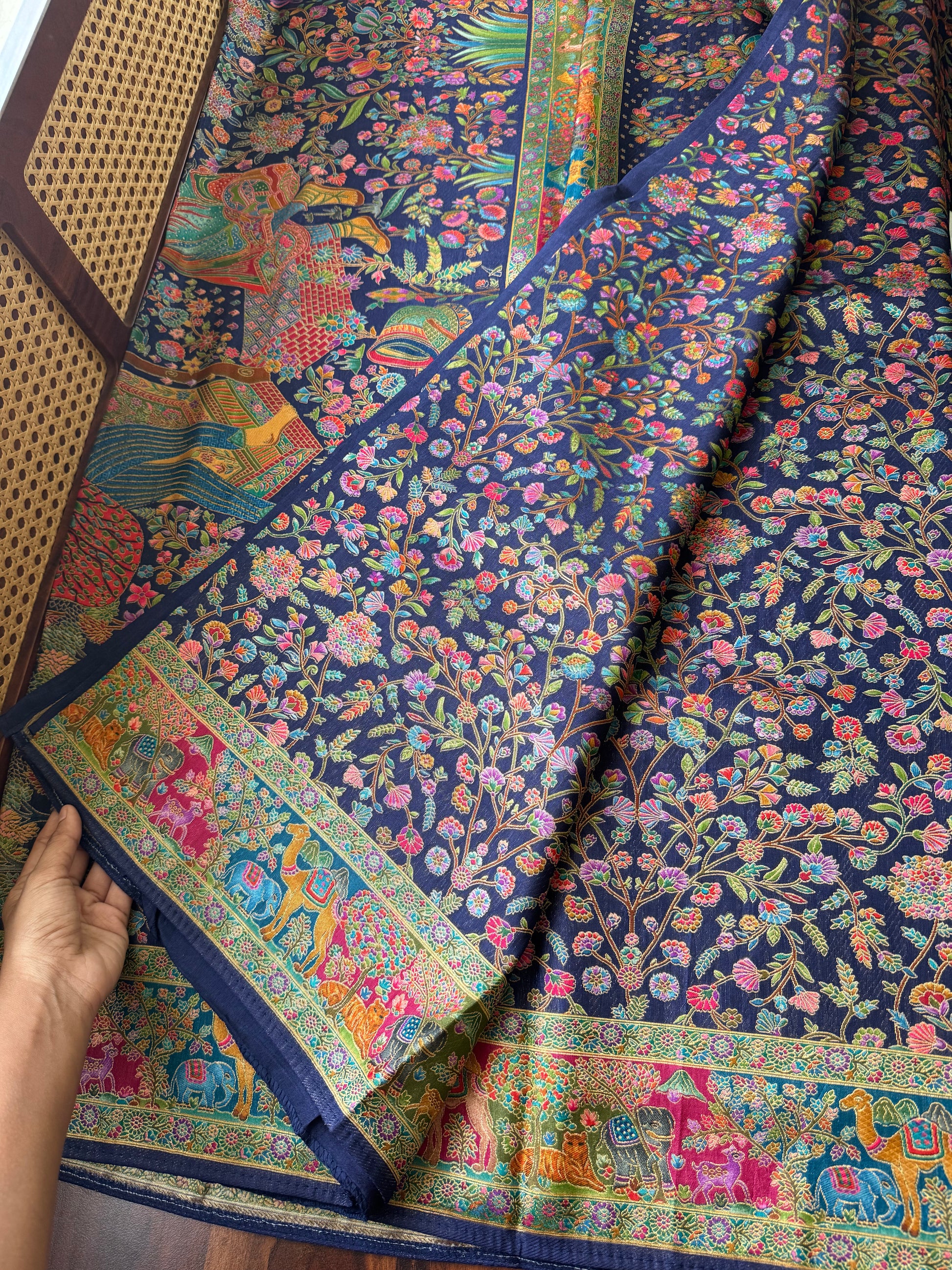 Luxe Pashmina Style Semi Silk Saree - Navy Blue