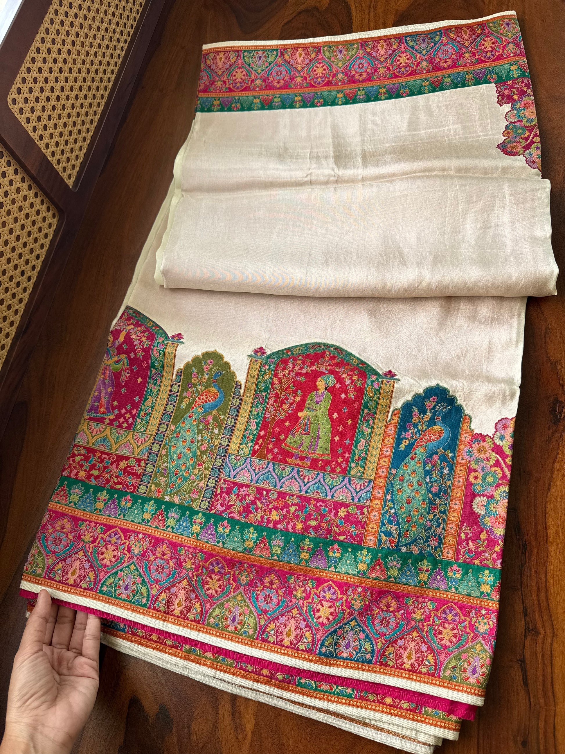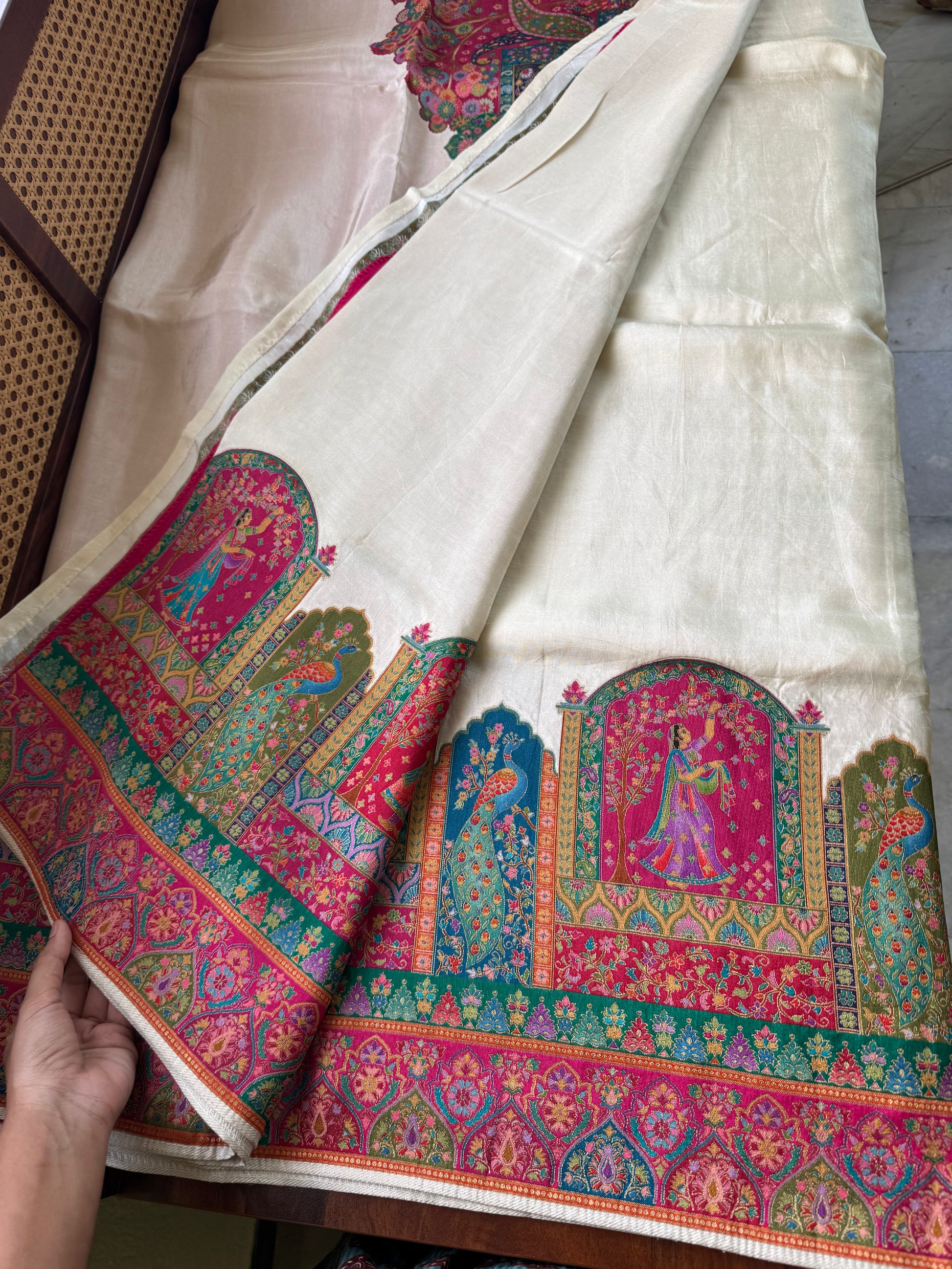 Luxe Pashmina Style Semi Silk Saree - White