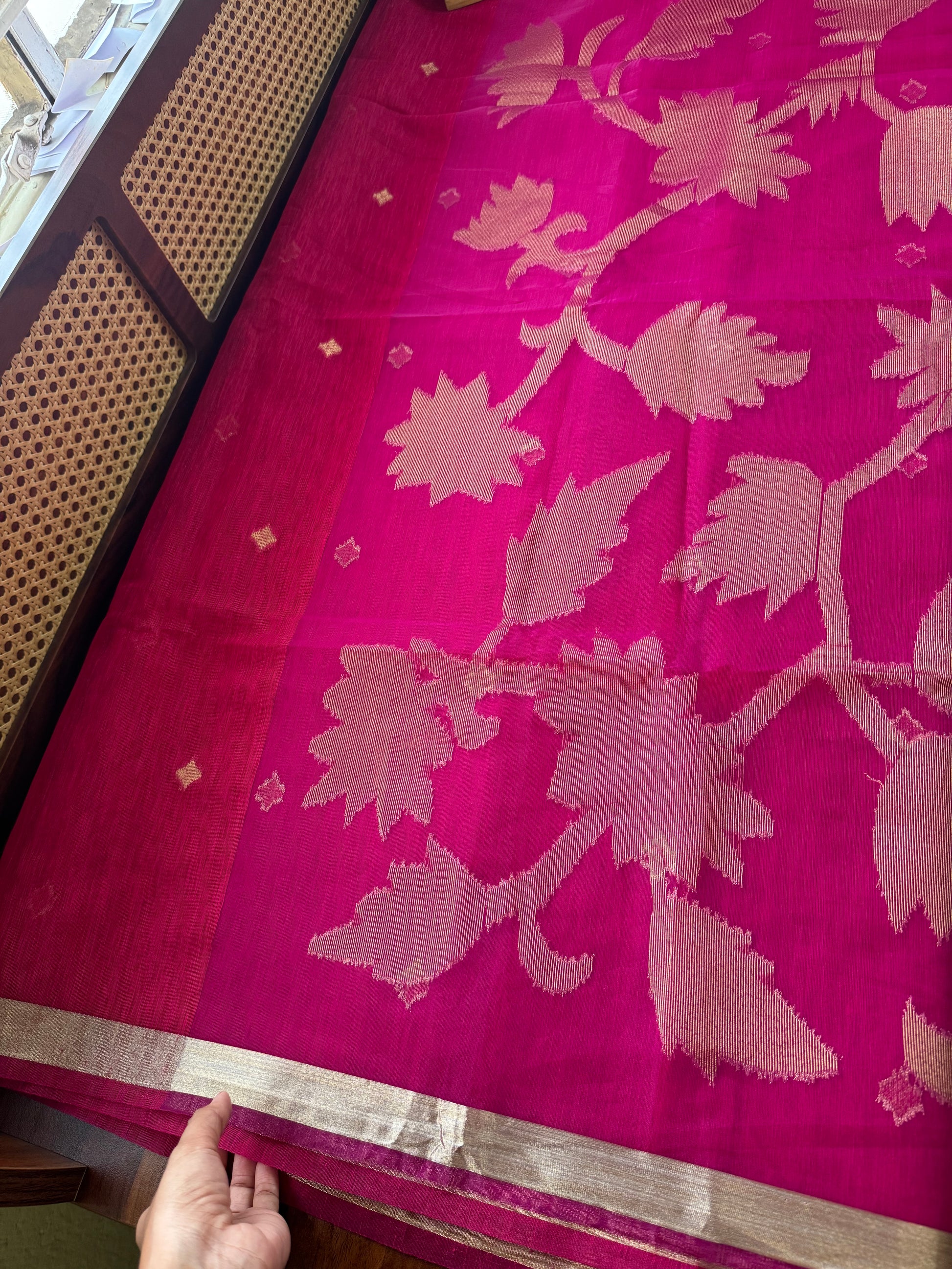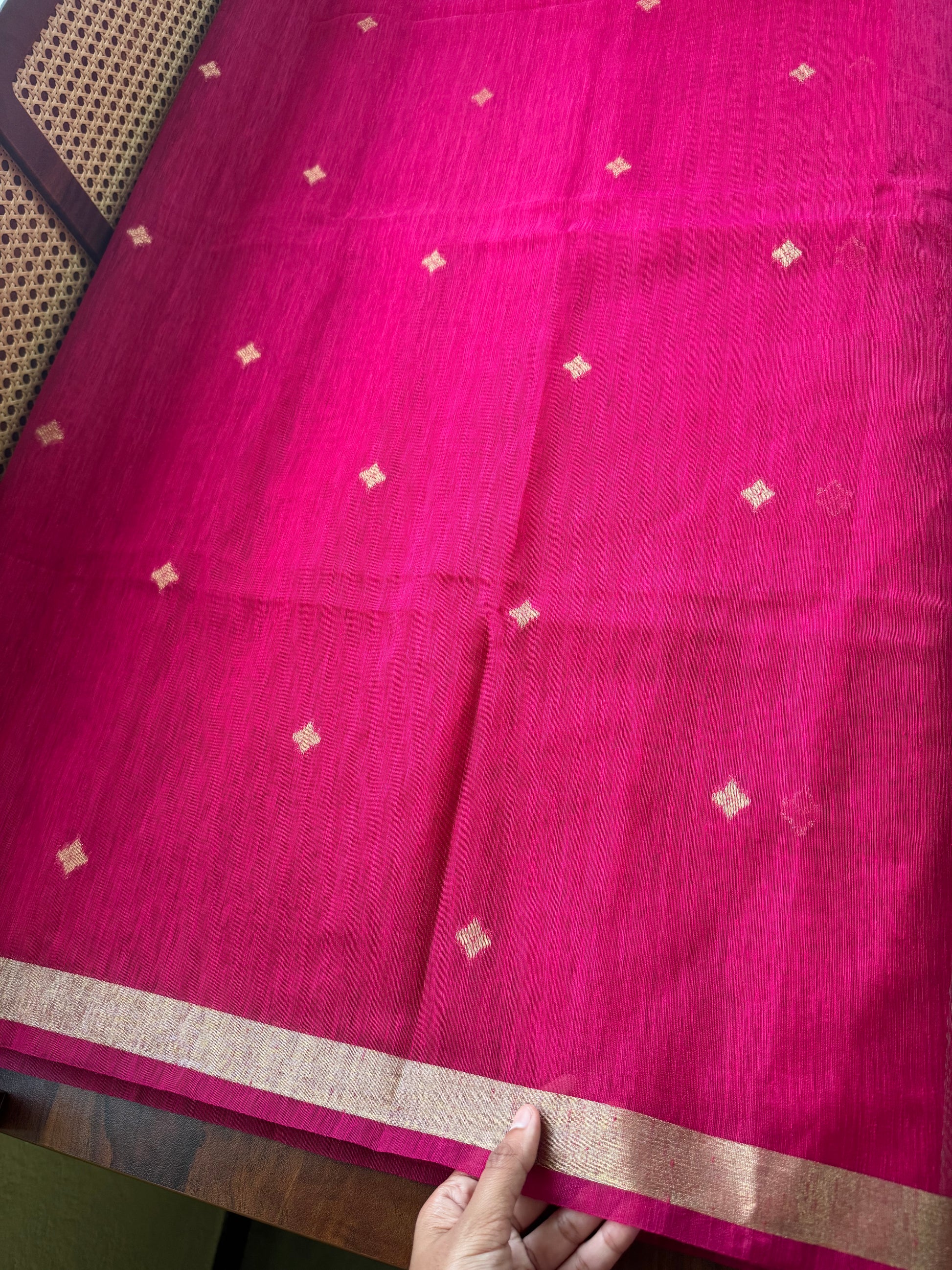 Minimal Tussar Georgette Blend Saree - Rani Pink