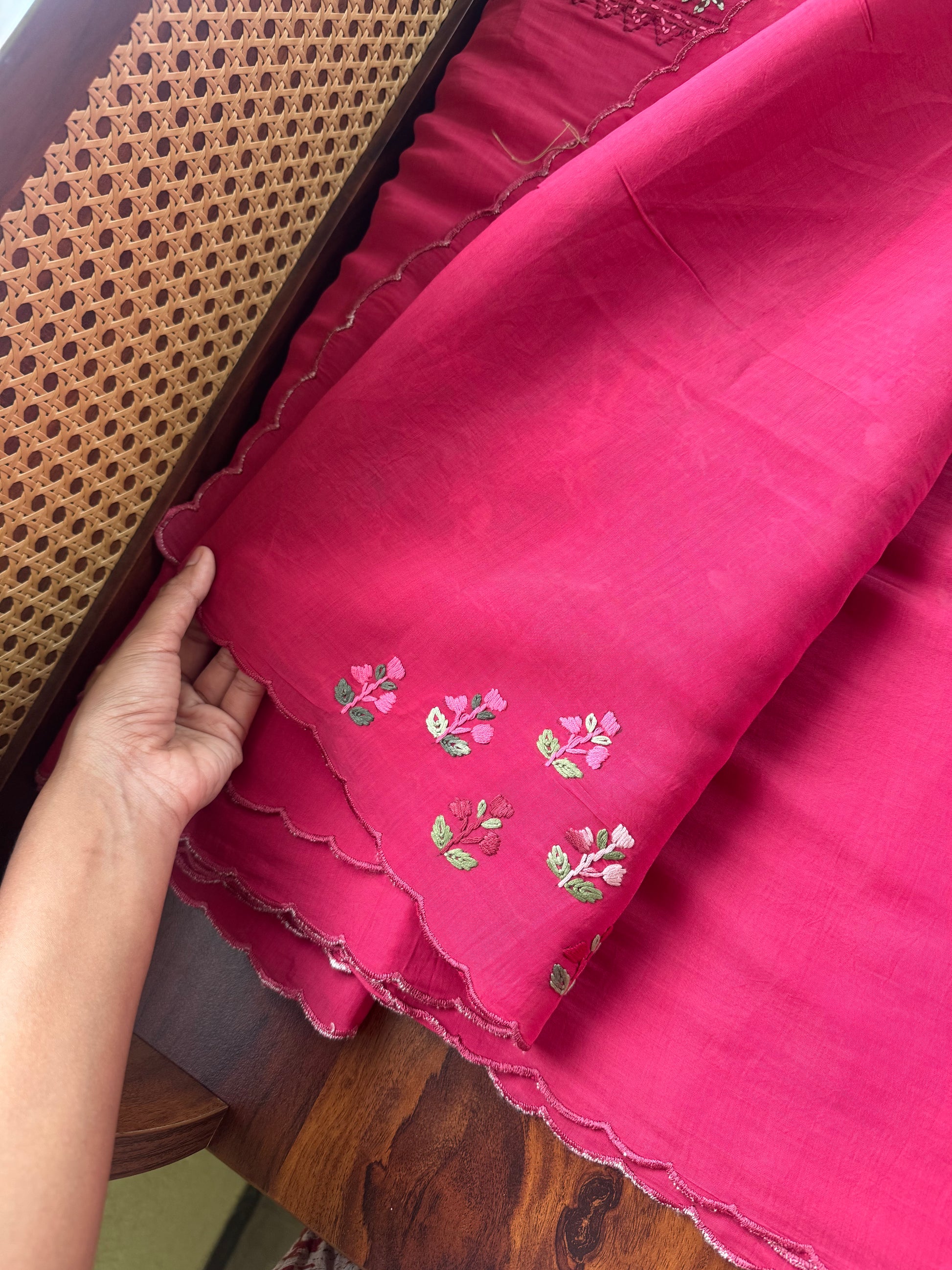 • Features a statement pallu, hand-embroidered with intricate French knots for a touch of artistry