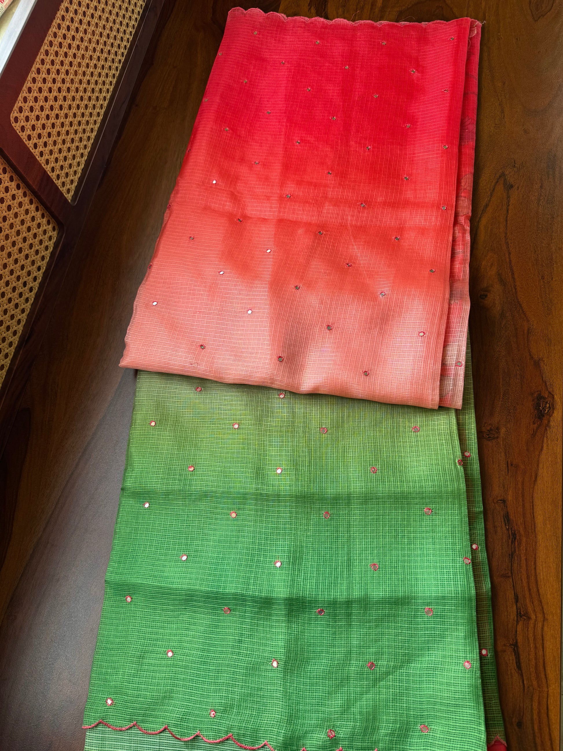 Ombre Silky Kota Saree - Red to Green