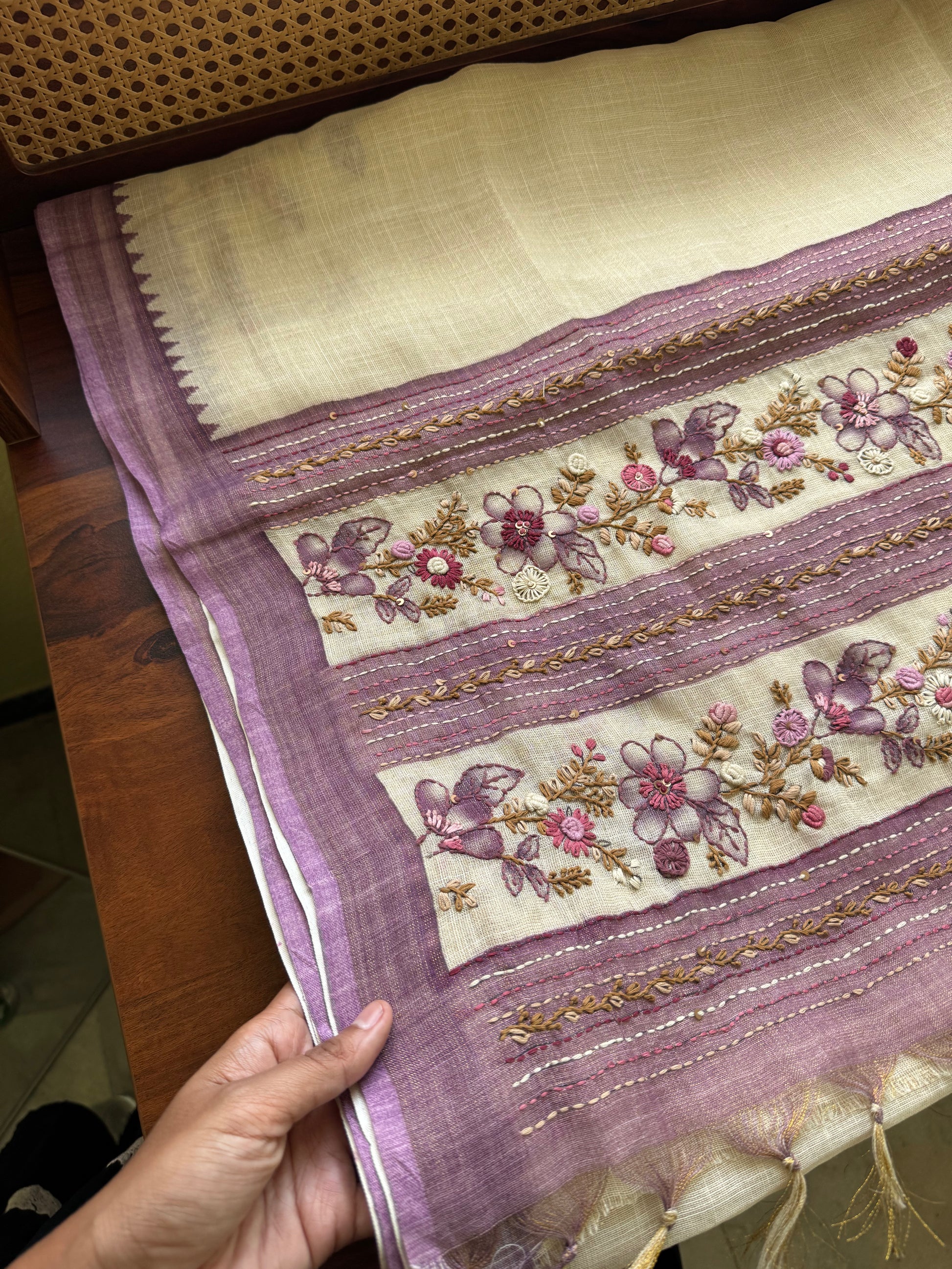 • Features a statement pallu, hand-embroidered with intricate French knots for a touch of artistry