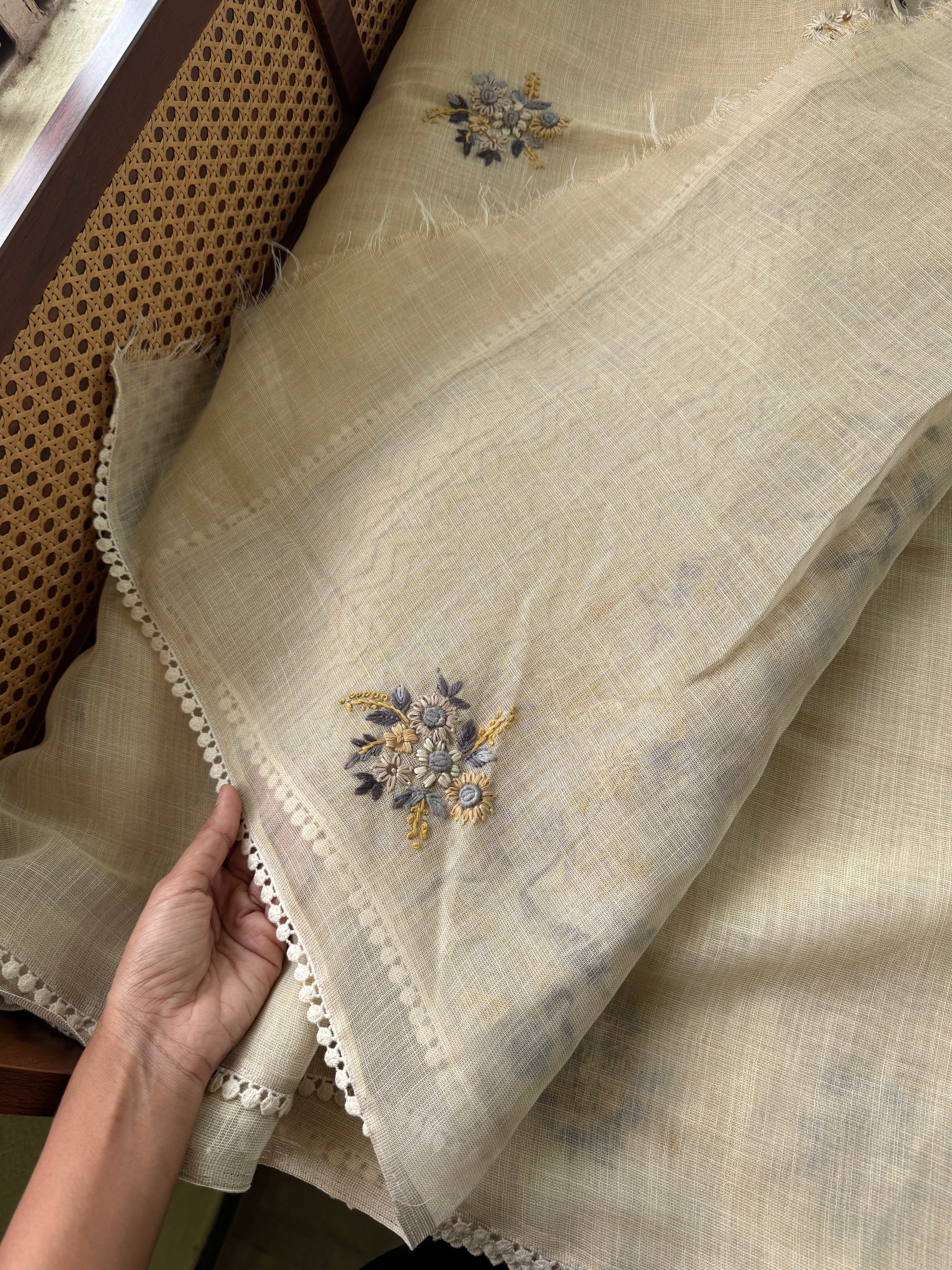 Please note: Slight color variations may occur due to digital photography and individual phone screens.Linen tissues have slightly golden tint due to golden yarns used in the base fabric which is not prominently visible in the pictures.