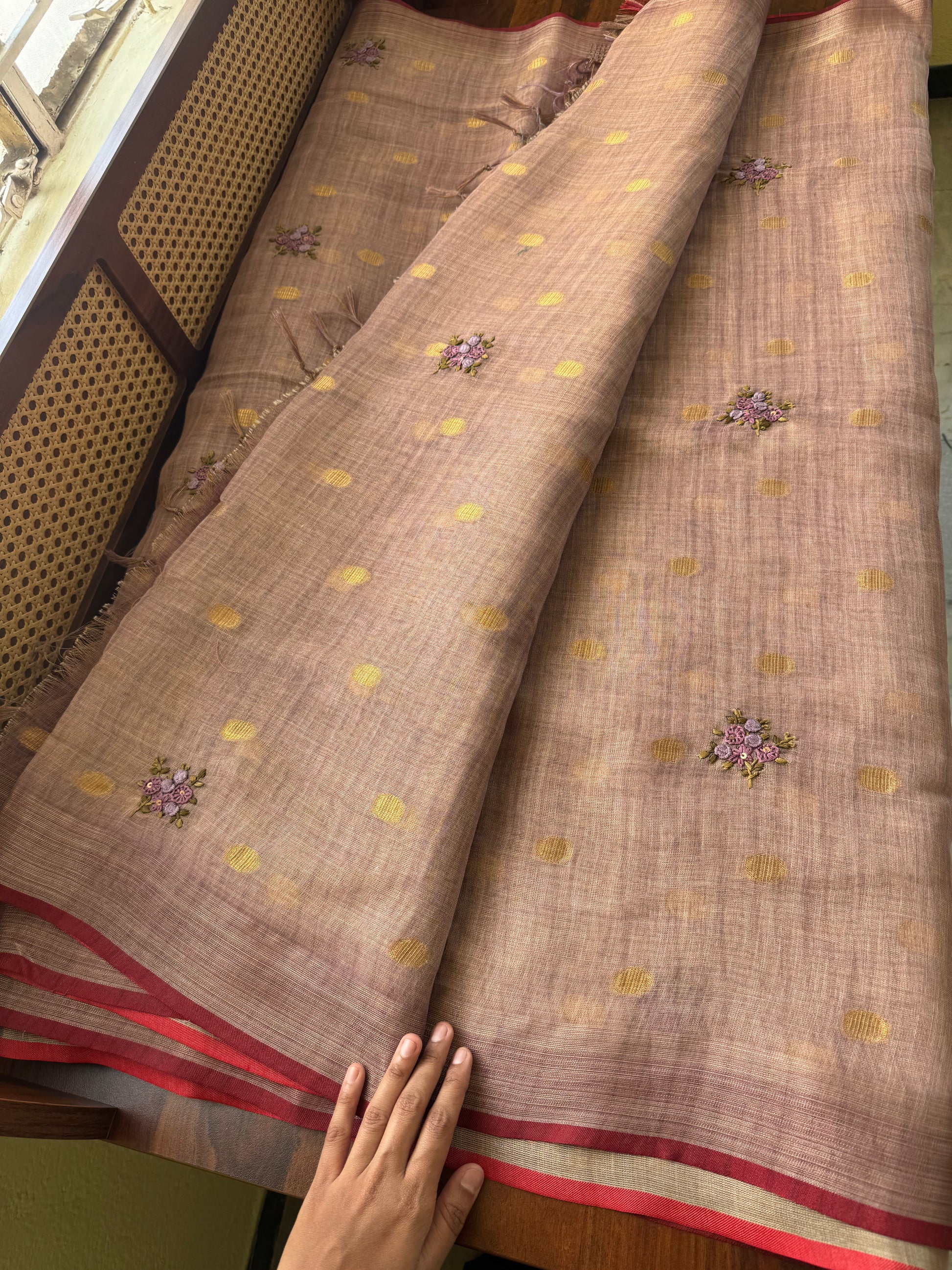 A timeless blend of elegance and ease — these Soft Tissue Linen Sarees are minimal, refined, and perfect for effortless summer dressing.