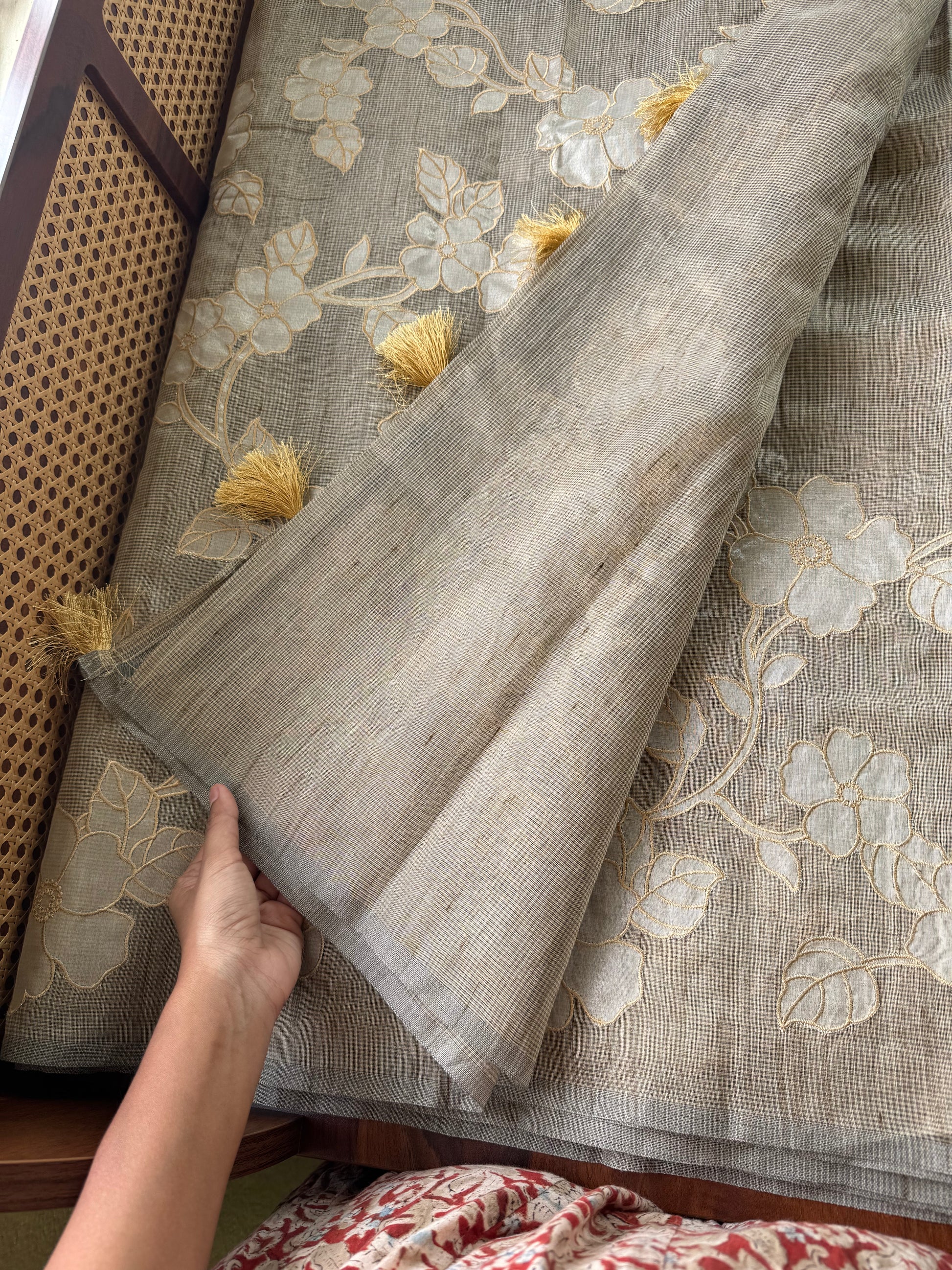 Tissue Applique Sarees - Grey Golden
