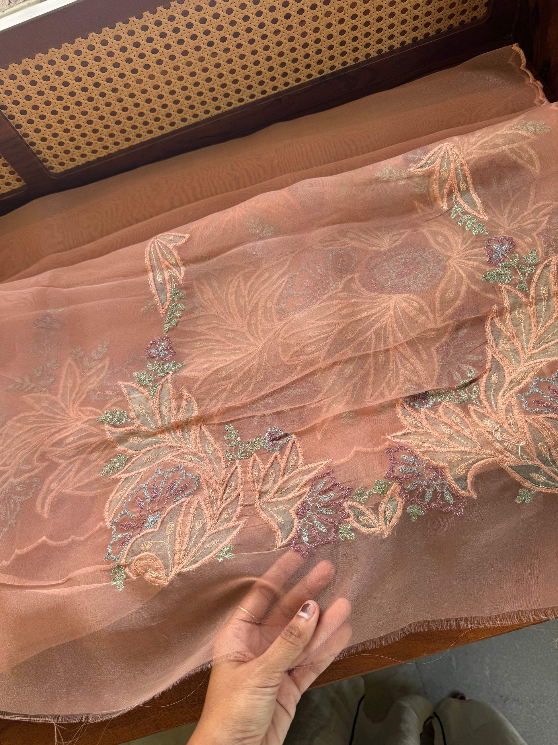 Tissue Organza Saree with appliqué work - Peach