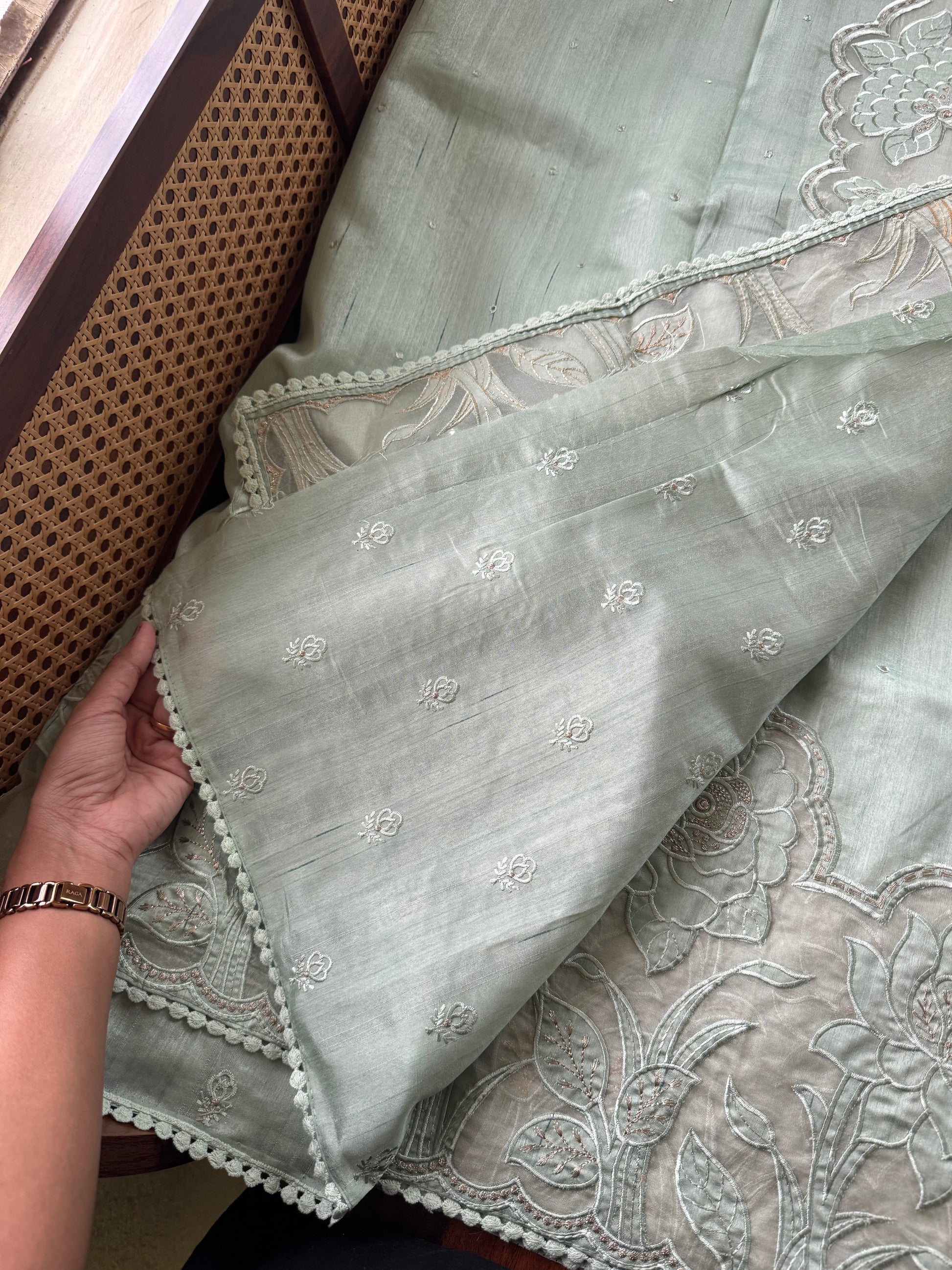 Tussar Blend Applique Saree - Pastel Green