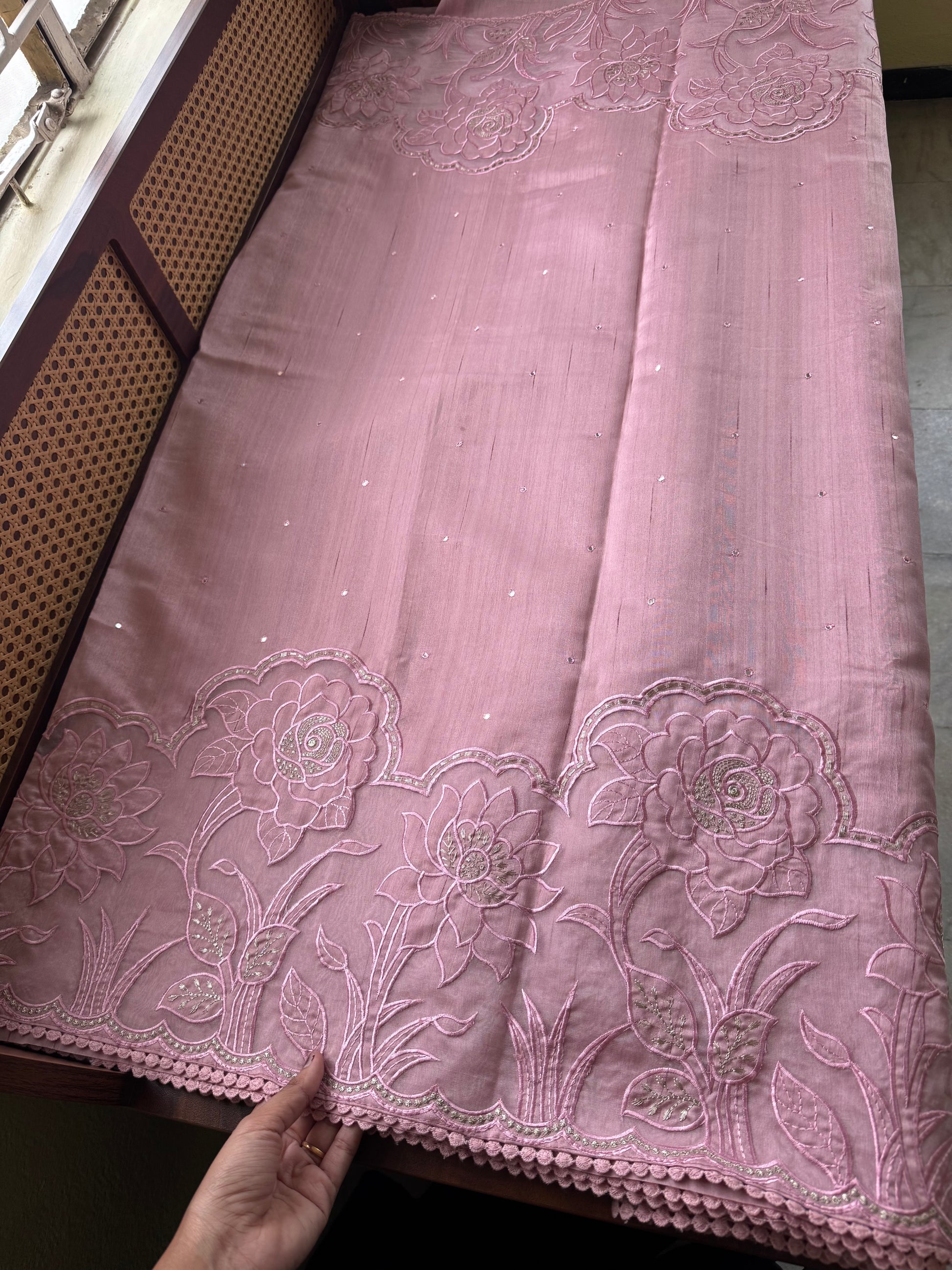 🌸Tussar Blend Organza Embroidered Saree 🌸
