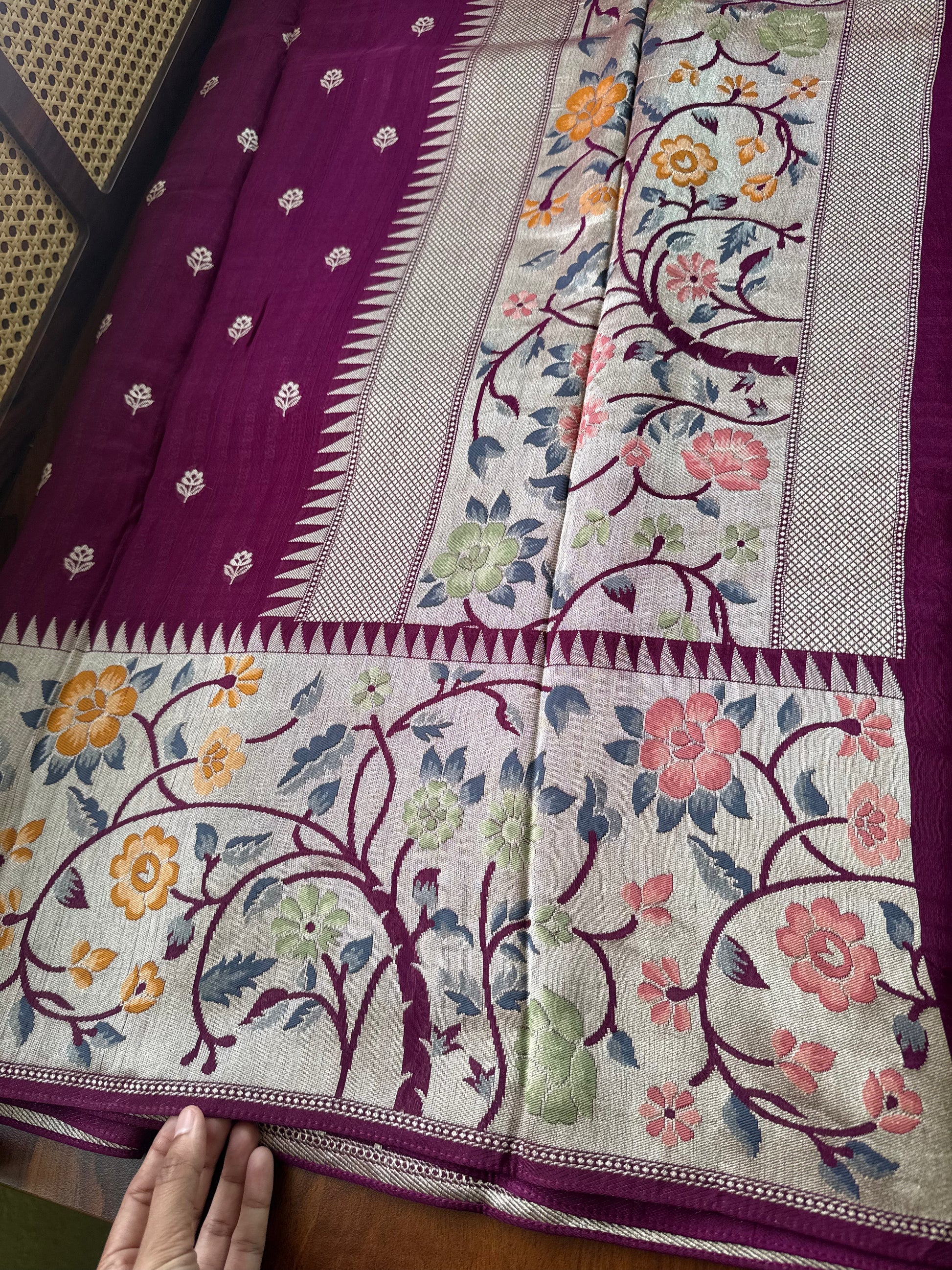 Tussar Georgette Semi Silk Saree - Wine Purple